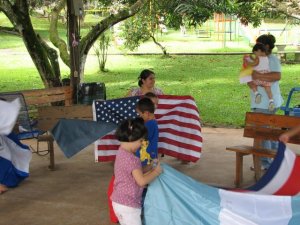 Every morning at the home we have devotions. On Monday there is a prayer time, Tuesday is worship time and Wednesday through Friday are a message. One of the topics while we have been here is to pray for the nations. This past Tuesday during worship they had flags from many nations around the world. As we worshipped we prayed for each of those nations. There were also Gold flags for heaven, White for God’s forgiveness and Red for His Blood.