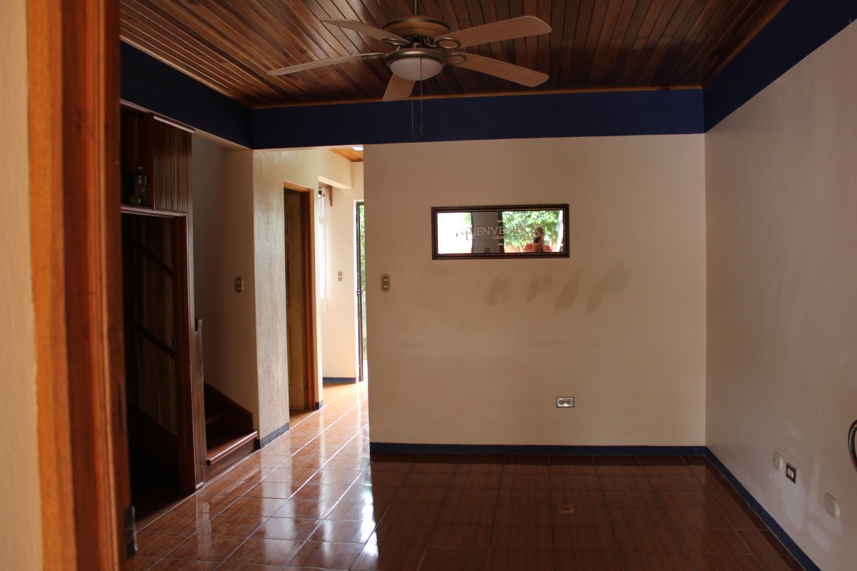 Looking in the front door, we will have our living room. We have permission to paint over the royal blue trim that our friends were asked to leave in place. On the left side moving back is an under-stair storage space, bathroom, and the utility area.