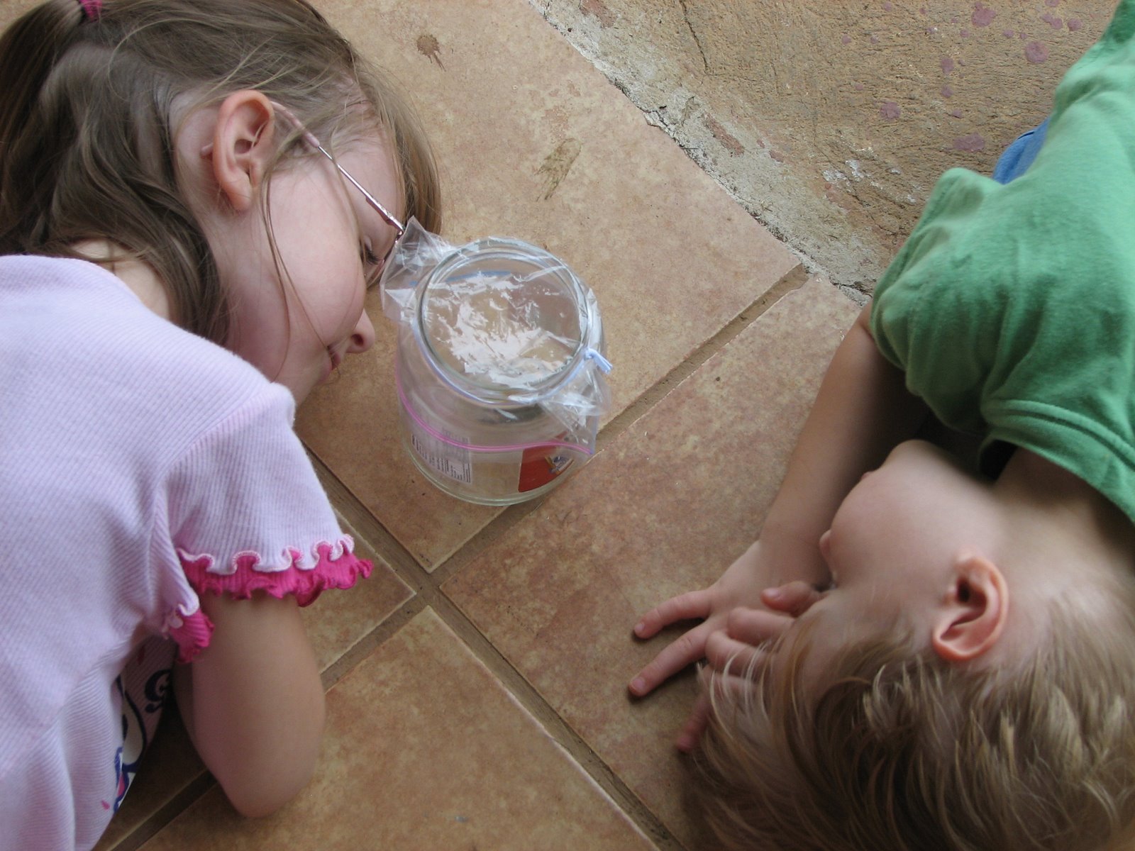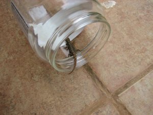 Kris caught a new friend in our bathroom this afternoon. We kept it in a jar until Elijah could wake up from his nap and see it. We explained to the kids that he was only a temporary pet so we have already released him to do bug patrol outside our cabin.