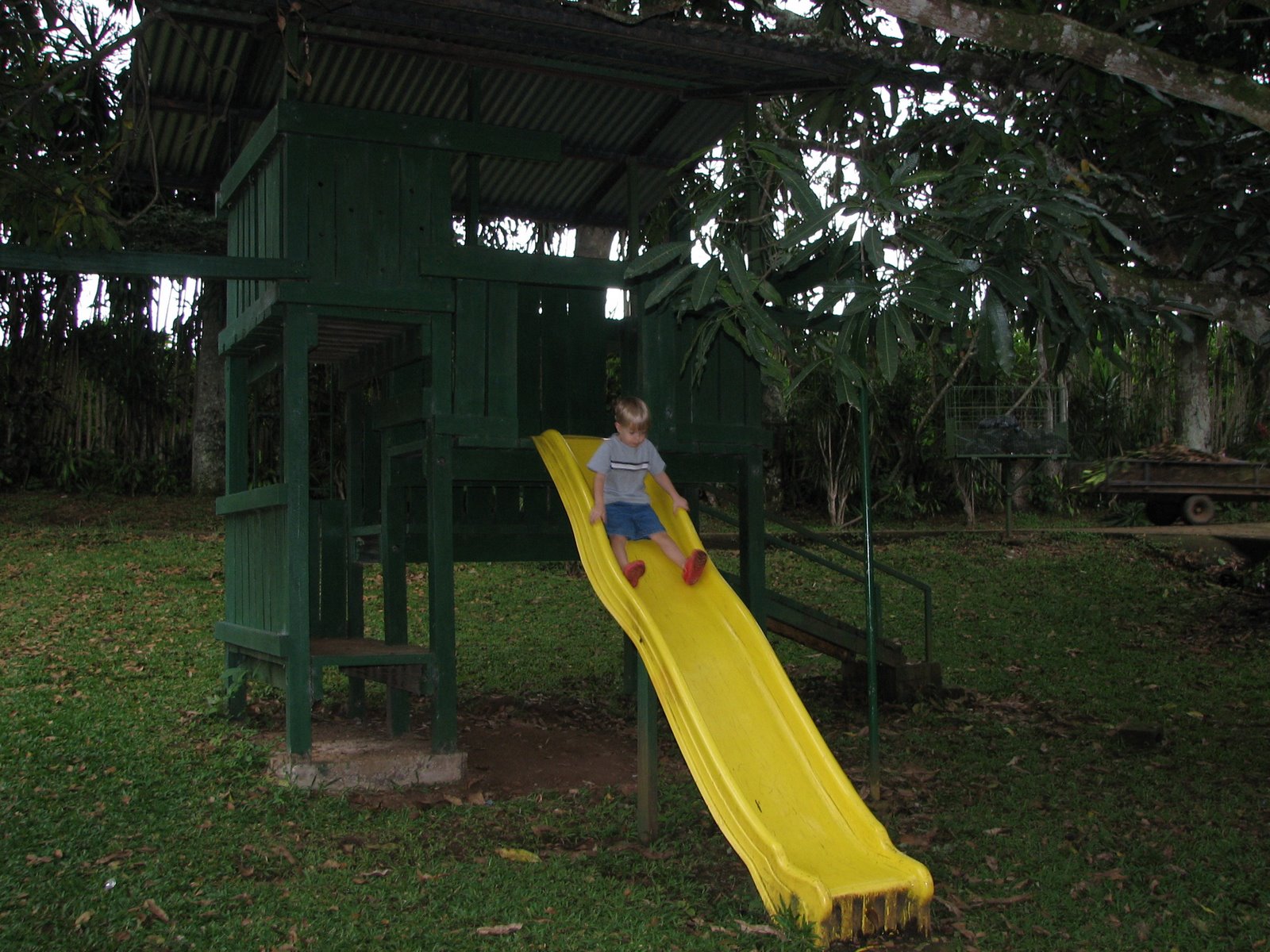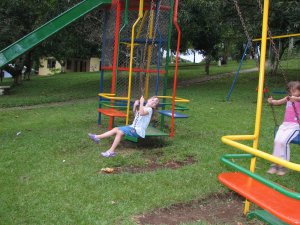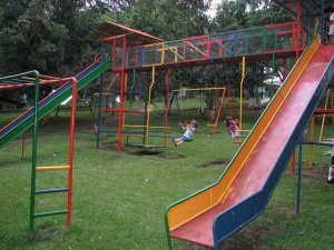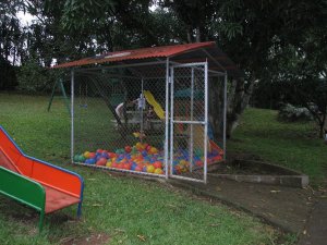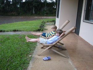 Next is a picture of the front of our home, it is difficult to get a good picture from the front because there are several tangerine trees directly in front of the cabin. In the picture there are two cabins with an open area covered by a roof between the two. You can see the tables and chairs in the open area. This is where we would typically eat our meals when we were here in the past with a large team. Since there are just the four of us we eat in the cabin. We are in cabina dos, the second cabin, it is on the right side of the picture.