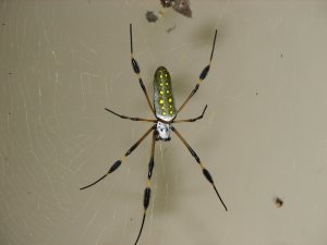 We have another friend living on the overhang of the cabin next to ours. We haven’t really made a formal introduction. We just tend to give him his space and let him take care of a few bugs. From what I can find searching on the internet he is a Golden Orb Spider. His body is about one and a half inches long.